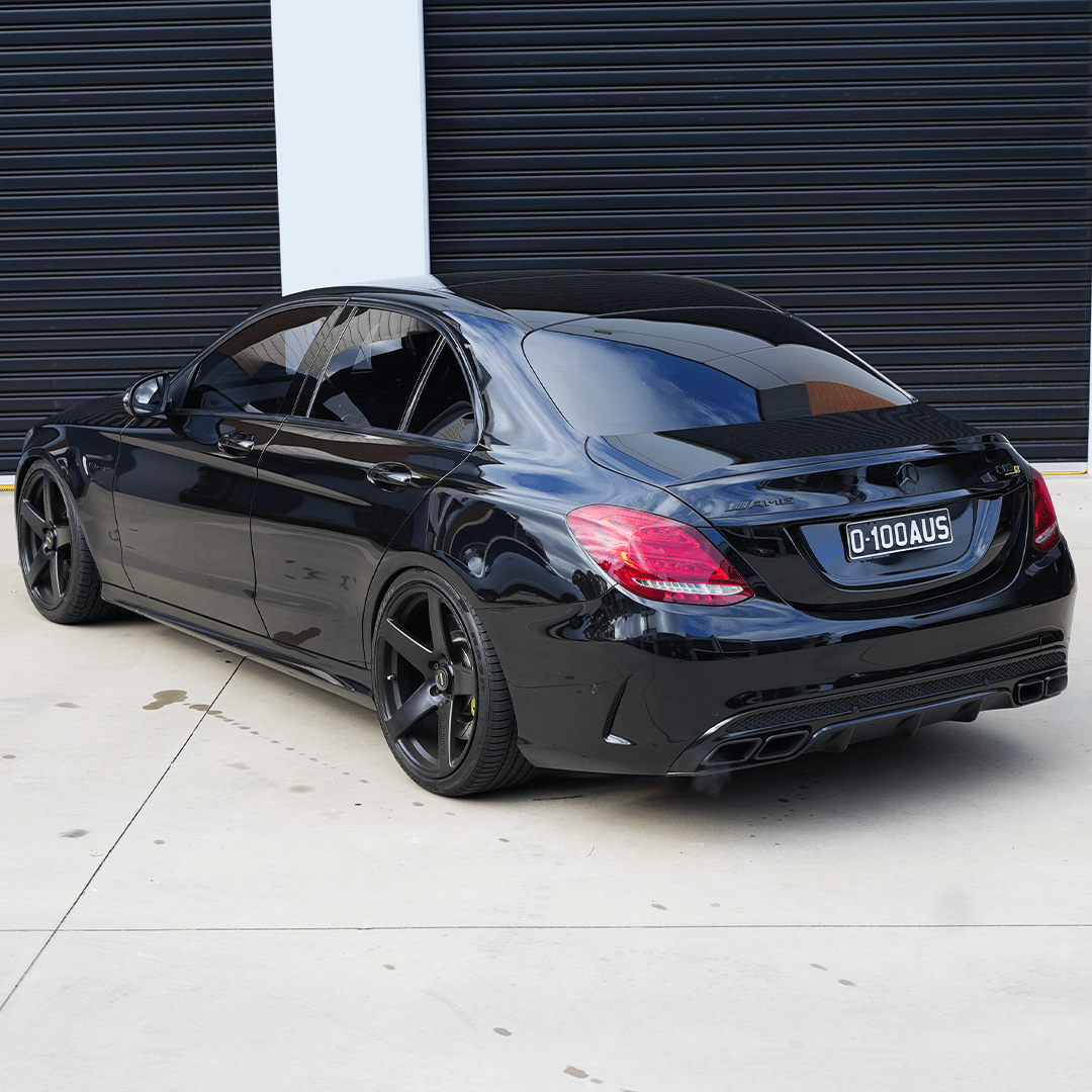 This isn’t your average C63 — this is a Stage 2 weapon. Under the hood sits a handcrafted 4.0L twin-turbo V8 tuned to pump out 600+ HP, backed by an AMG exhaust note so savage it’ll rattle the streets.